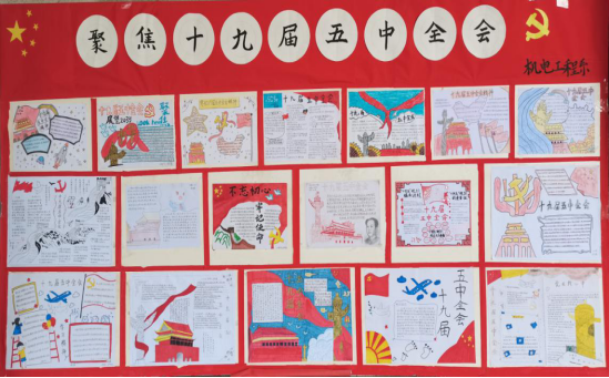 为进一步把广大同学的思想和行动统一到党的十九届五中全会确立的新思想、新论断、新目标、新要求上来,机电工程系于12月19日-12月23日举办了“聚焦党的十九届五中全会”主题优秀手抄报作品征集活动。