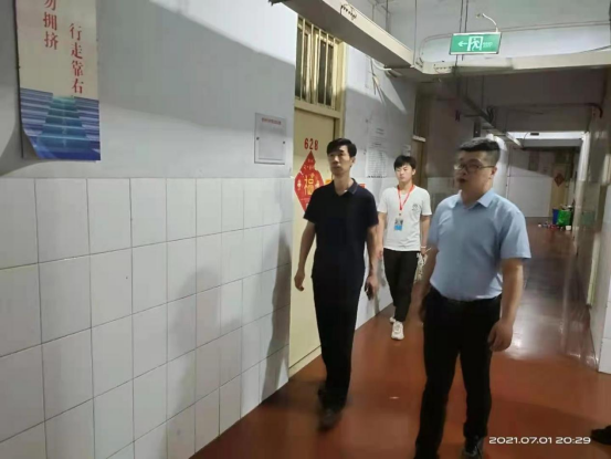 为了切实保障同学们的生命和财产安全,维护校园社会大局稳定,为建党百年营造良好氛围。机电工程系党总支书记王建军、副书记王远志和全体辅导员老师于7月1日晚走进学生宿舍组织开展了一次全面深入的地毯式校园安全风险隐患大排查大整治。