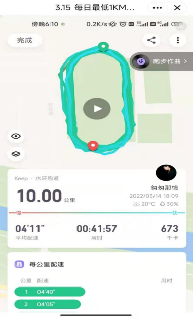 活动依托于Keep跑步轨迹记录软件,学生在校园内跑步打卡,完成每日里程数后在指定群内上传截图即可计入成绩,参与最终活动评选。活动开展以后,校园中迅速掀起了锻炼热潮,同学们在跑道上尽情挥洒汗水,成为绿茵场上最绚丽的风景线。赛后,体育组负责人根据有效里程数和累计参赛天数,拟定出一等奖10名,二等奖20名,三等奖30名,优秀奖250名。