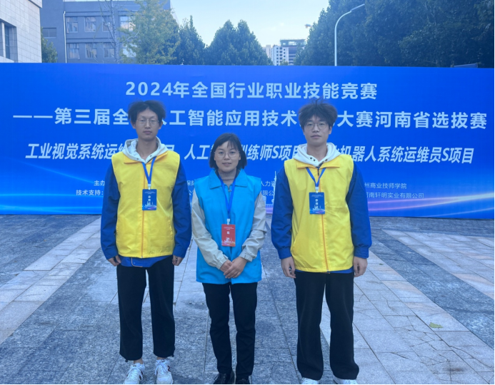 10月18日至20日,由河南省人力资源和社会保障厅主办,郑州市、新乡市人力资源和社会保障局承办,郑州商业技师学院、河南经济贸易技师学院等院校协办的“2024年全国行业职业技能竞赛——第三届全国人工智能应用技术技能大赛河南省选拔赛-工业机器人系统运维员S赛项”在郑州商业技师学院隆重举行。我系任平英老师带领23机器人2班石佳羿、柴靖宜同学参加比赛,任平英老师也是工业机器人系统运维员S赛项的裁判。经过为期三天的理论和实操激烈比赛。石佳羿、柴靖宜同学取得了工业机器人系统运维员S赛项第三名。