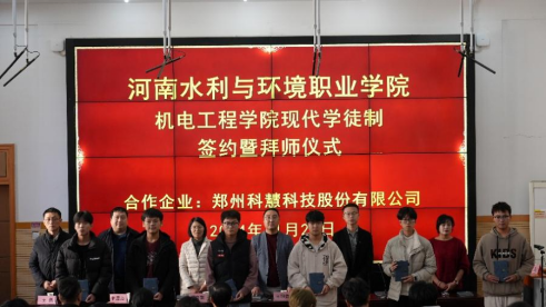 11月20日,太阳集团tyc138举行科慧现代学徒制签约暨拜师仪式。太阳集团tyc138党总支书记王建军、主任王利卿,副主任李戈,郑州科慧科技股份有限公司刘浩阳经理,企业导师和太阳集团tyc138师生代表参加,仪式由太阳集团tyc138副主任李戈主持。