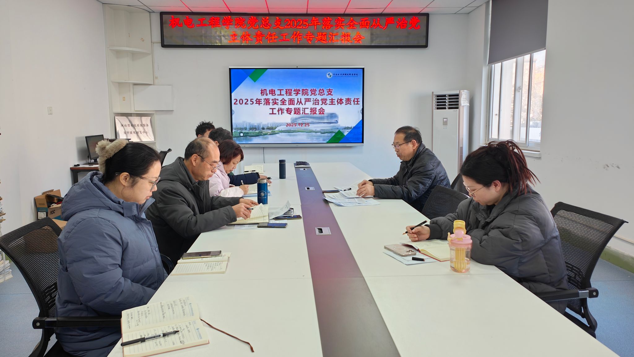 霍国义对学院党总支2025年全面从严治党工作取得的成效给予充分肯定。他指出,学院党总支政治站位高、责任意识强,全面从严治党工作部署扎实、推进有力,党建与业务融合成效显著,各项工作取得了良好成绩。针对下一步工作,他强调,一要持续强化政治建设,深刻领悟“两个确立”的决定性意义,增强“四个意识”、坚定“四个自信”、做到“两个维护”,始终在思想上政治上行动上同以习近平同志为核心的党中央保持高度一致;二要压紧压实主体责任,健全完善“党总支负总责、书记第一责任人、班子成员一岗双责”的责任体系,推动全面从严治党向基层延伸、向纵深发展;三要深化党建与业务融合,立足机电工程专业特色,以党建引领学科建设、人才培养、科研创新等工作,切实把党建优势转化为发展优势;四要从严抓好问题整改,针对查摆的问题建立台账,以整改实效推动全面从严治党工作再上新台阶。