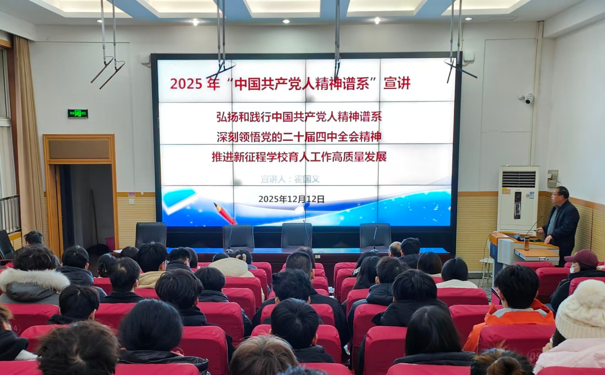 2025年12月12日上午,为深入学习贯彻习近平新时代中国特色社会主义思想,引导师生党员从中国共产党人精神谱系中汲取奋进力量,太阳集团tyc138在北教三阶召开中国共产党人精神谱系专题宣讲会。校党委委员、太阳集团tyc138专职组织员霍国义、太阳集团tyc138党总支书记张国路担任主讲嘉宾,学院全体教职工党员、教师骨干代表以及2025年入党积极分子参加本次宣讲会。