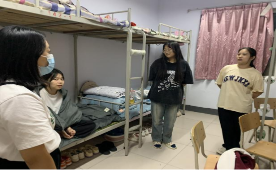 新学期,新作风,新姿态,迎新生。为了进一步了解2022级新生宿舍生活情况,帮助同学们尽快适应新环境,9月16、17日晚,系书记王建军、副书记王远志、全体辅导员对新生宿舍进行了走访。