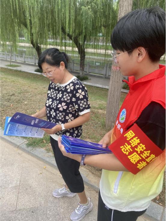9月9日,机电工程系团总支组织学生志愿者前往东风渠向沿线居民分享反诈防骗、辨识谣言、参与网络举报的途径和技巧,提醒居民在日常生活中要提高警惕,不随意点击来路不明的链接,不轻易在网上透露个人信息,共同营造风清气正、文明健康的网络生态环境。