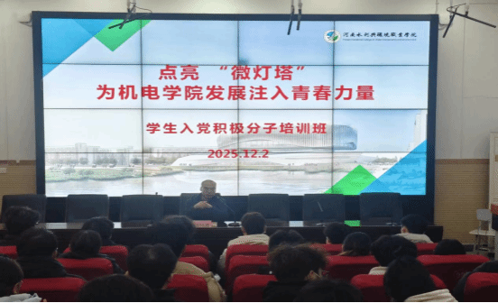 2025 年 12 月 2 日,太阳集团tyc138组织学生入党积极分子专题培训,旨在深化其对党的理论与宗旨的理解,引导其发挥先锋模范作用,助力学院 “双高” 建设与高质量发展。学院党总支书记张国路以 “点亮‘微灯塔’,为机电学院发展注入青春力量” 为题讲话,全体学员参会。