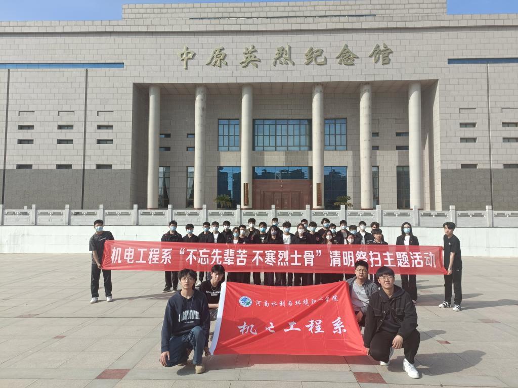为悼念革命烈士,缅怀先烈的丰功伟绩,教育师生继承革命先烈的光荣传统,弘扬民族精神,继承先烈遗志,在我国传统祭奠日清明节来临之际3月28日下午机电工程系团总支组织师生开展“不忘先辈苦,不寒烈士骨”清明祭扫活动。系党总支书记王建军、副书记王远志、师生代表、校国旗班共50人赴郑州烈士陵园向革命烈士纪念碑敬献花篮并前往中原英烈纪念馆参观学习。