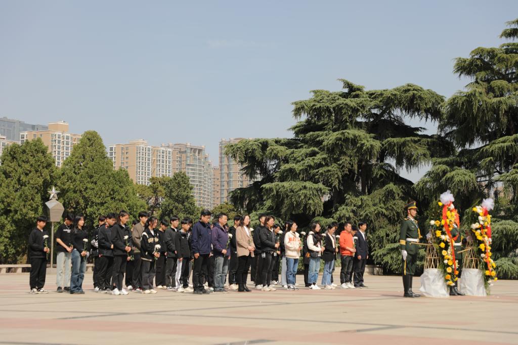 活动伊始,全体师生排着整齐的队伍来到郑州烈士陵园,在庄严肃穆的烈士纪念碑前举行了简短又隆重的悼念仪式。国旗班成员向先烈敬献花篮,师生肃立、鞠躬,集体默哀,悼念英魂。活动最后,王建军激励师生要继承先烈们的遗志,发扬先烈的革命精神,珍惜今天来之不易的幸福生活,要继续学习贯彻党的二十大精神和习近平总书记各项会议重要讲话精神,为祖国的繁荣昌盛贡献自己的力量。