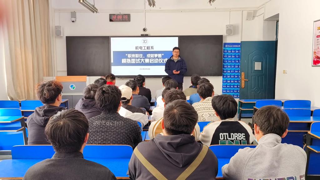 为引导学生树立正确职业目标,锻炼学生面试的心理素质,提升求职面试和就业应聘能力,机电工程系于4月4日举办“职来职往,成就梦想”模拟面试活动启动仪式,系党总支副书记王远志和学管老师参加此次活动。