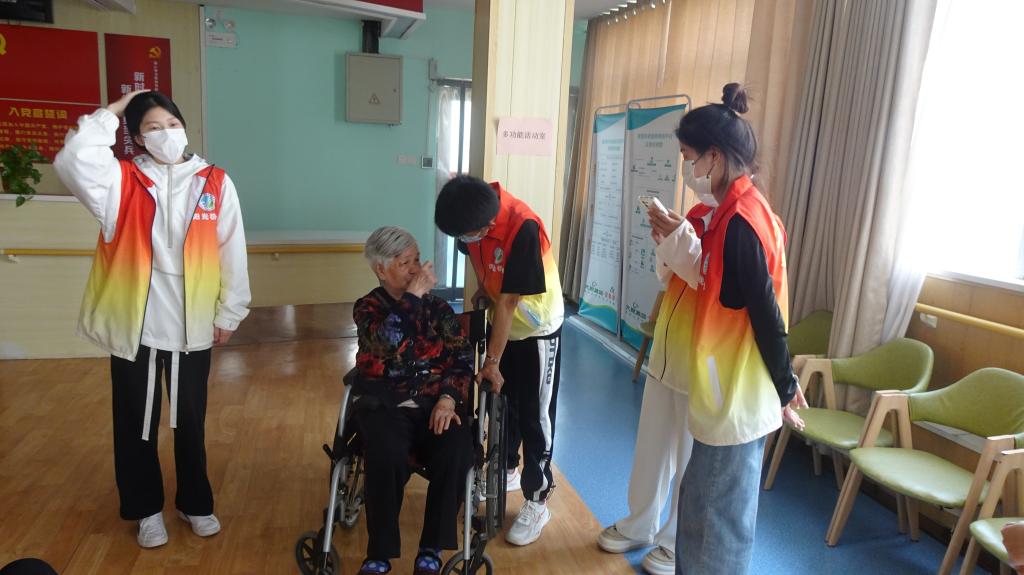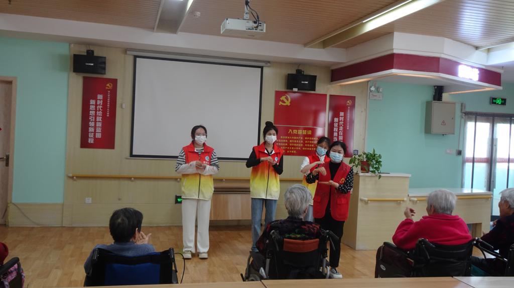 暖心慰问抚人心,尊老敬老世泽长。志愿者们一到敬老院就分为若干个小组,分工协作,有的帮助老人整理床铺和生活用品、打扫卫生、剪指甲;有的陪老人做游戏、教老人们手指舞、活动手指关节;有的帮助老人调试智能手机,采取一对一、手把手的方式辅导讲解,帮助老年人掌握智能手机使用技巧和防范网络诈骗的知识和技能;有的推老人出来晒太阳,帮老人们捶背,热情大方地和老人唠家常、聊趣事、讲养生知识,悉心询问他们的健康情况和生活状况;有的认真倾听老人们的个人经历,与老人共唱《没有共产党就没有新中国》,同学们深刻感受到今天幸福生活的来之不易。