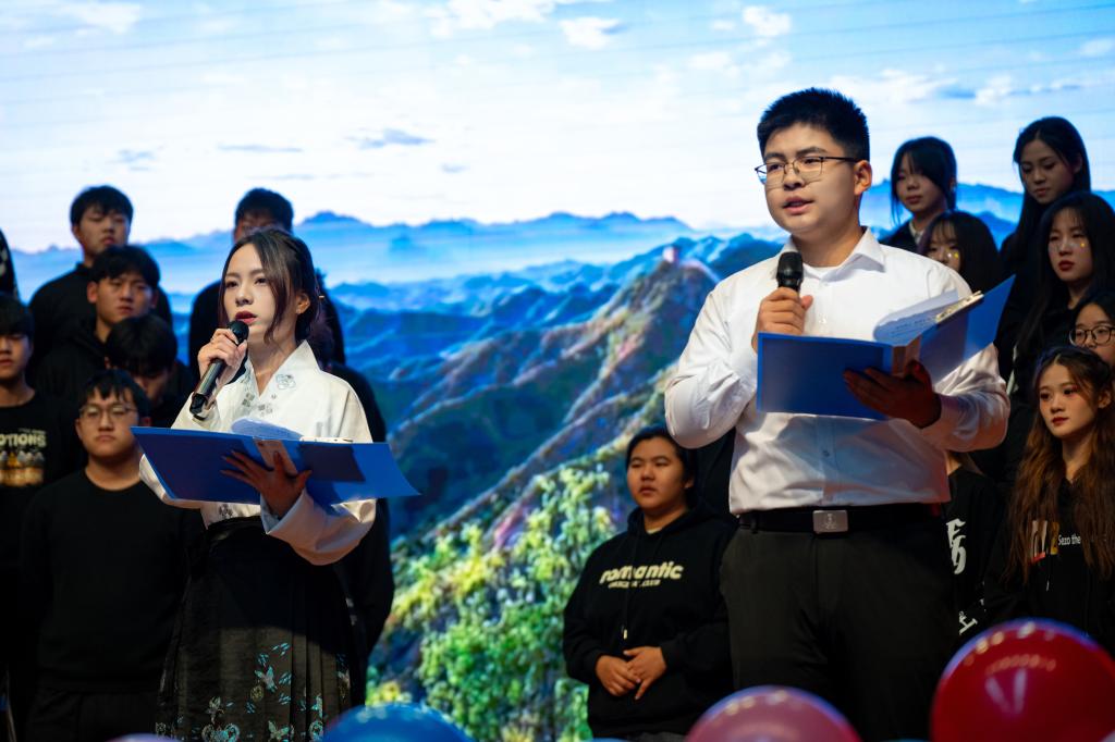 晚会在精彩的师生开场舞“礼仪之邦”中拉开帷幕,现场的观众迅速融入到欢快的气氛中。三句半“产业学院那些年”四位表演者轻松诙谐的肢体动作和妙趣横生的总结逗得大家哈哈大笑;话剧“我的1919”带领观众重温104年前的那场外交风云和五四运动的起因;舞蹈“GOOD TIME”和音乐《吉他 SHOW》将氛围迅速点燃,观众们跟随着音乐一起挥舞手中的荧光棒;话剧“满江红”所表达的家国情怀、文化传承让观众们血脉偾张;张天策老师的一手钢琴独唱“再见深海”引得大家掌声不断;小品“我和爸爸换角色”包袱不断,现场笑声此起彼伏;合唱“唱支山歌给党听”“中国军魂”表达了师生对党和国家的无限深情与热爱;最后产业学院全体学生起立集体朗诵“请党放心,强国有我”,展现了机电学子脚踏实地、奋发有为的良好精神风貌。