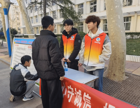 活动于12月29日至31日在天使大道有序开展。12月29日中午12时,活动正式启动,来往学子纷纷驻足参与。现场,同学们或认真研读展板上的诚信考试承诺书,深刻领会诚信应考的内涵;或主动与志愿者、身边同学交流探讨诚信考试的重要意义,分享高效备考技巧与经验;更有不少同学在宣传展板的签名区郑重签下自己的姓名,以笔墨定格承诺,用行动传递“拒绝舞弊、诚信应考”的坚定信念。同学们全程热情高涨、态度严谨,让活动现场洋溢着浓厚的诚信氛围,为此次活动增添了别样光彩。