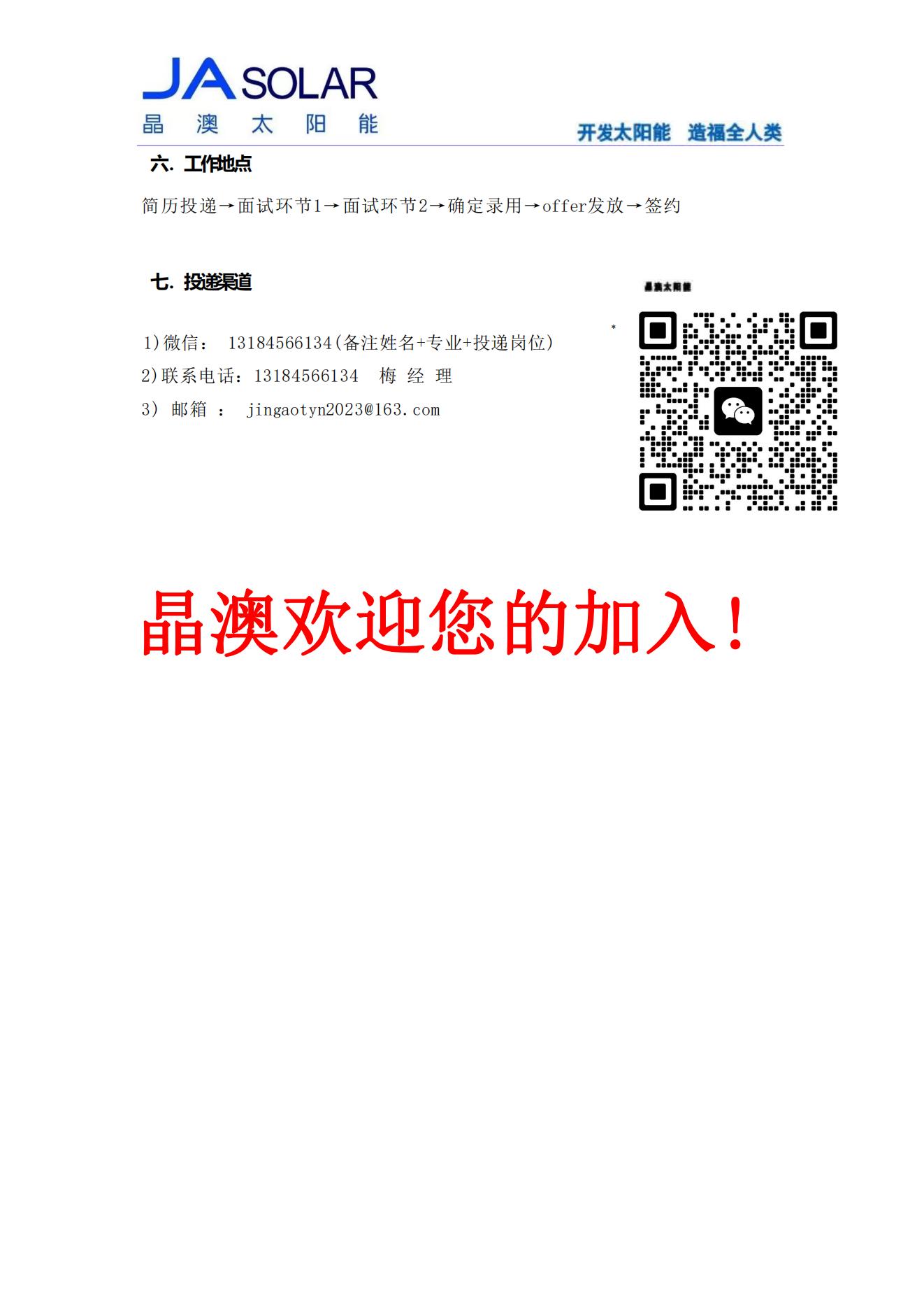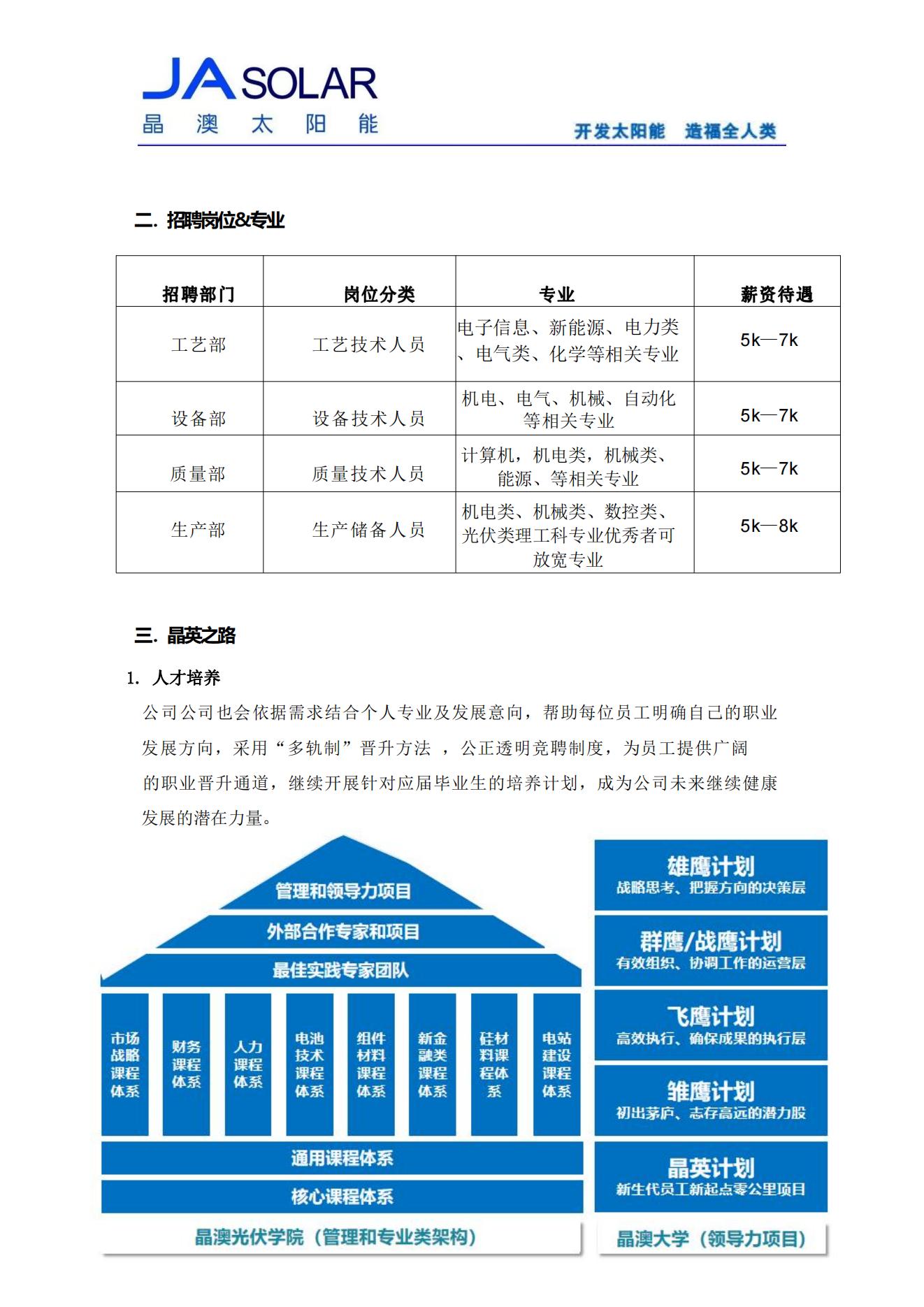 晶澳太阳能校园招聘简章